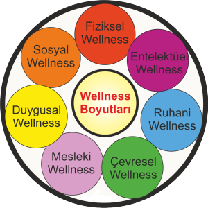 Wellness’ın birbiri ile ilişkili olan, fiziksel, duygusal, entelektuel, ruhani/ruhsal, sosyal, çevresel ve mesleki wellness gibi boyutları ya da bileşenleri vardır. Her bir boyut optimum sağlığın elde edilmesinde eşit derecede önemlidir. Aşağıda wellness için yedi boyut verilmiştir.